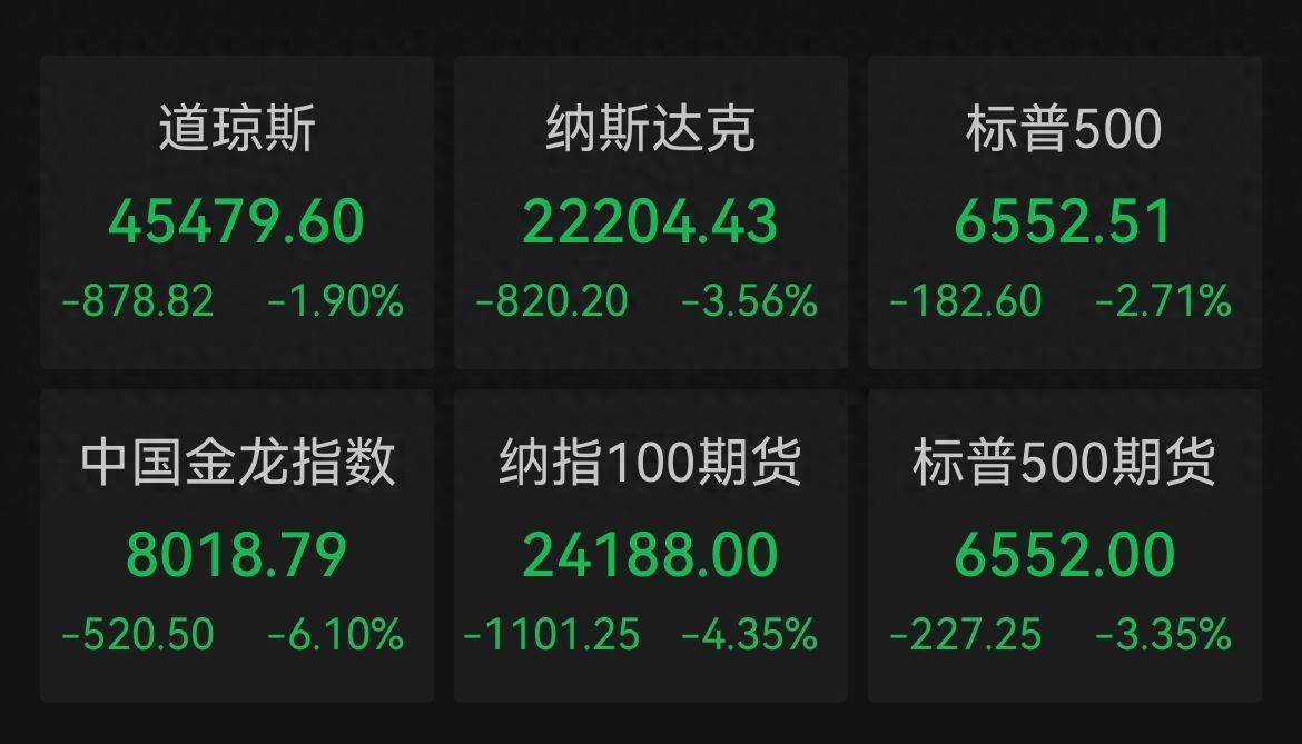 大型科技股普跌,博通跌近6%,特斯拉跌超5%,亚马逊跌近5%,英伟达跌超4%,苹果、Meta跌超3%,微软、谷歌跌超2%。
